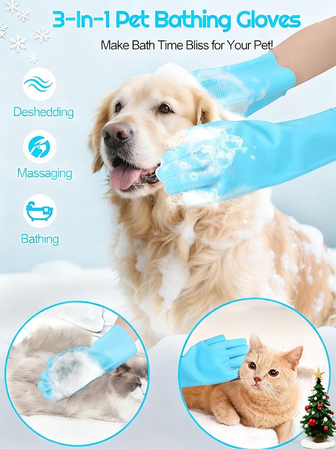 + Free Shipping- 3-in-1 Bathing, Deshedding and Massaging: Itingy pet bathing silicone gloves combine a cleaning brush and a glove, with excellent elasticity and comfort, which can effectively removes loose hair from your pet’s body while bathing them.