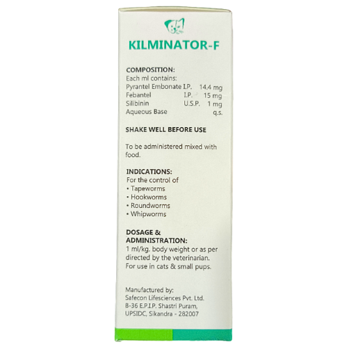 The easy-to-administer liquid format makes dosing simple and stress-free, especially for small pets. Regular deworming with Kilminator-F helps improve digestion, nutrient absorption, and overall growth, ensuring your pet stays active and healthy.