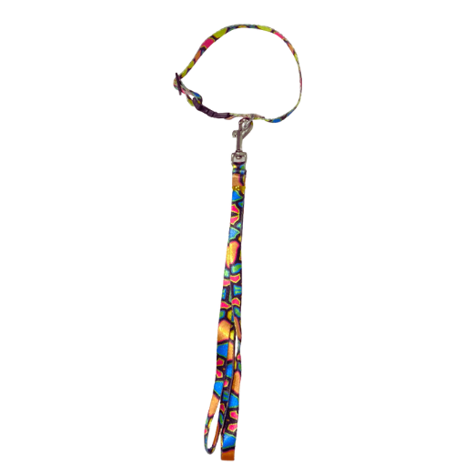 Printed Puppy Collar with Leash Set – Adjustable Soft Nylon Designer Pattern