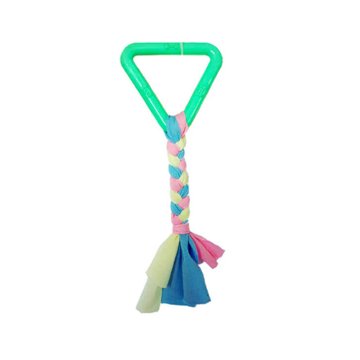 Keep your dog active and engaged with this Triangle Handle Rope Dog Toy, designed for interactive tugging, chewing, and playtime fun. Featuring a strong plastic triangle handle and tightly braided cotton rope, this toy offers an easy grip for both dogs and pet parents. The soft fabric tassels add extra excitement and movement, while the rope helps clean teeth and massage gums during chewing. Perfect for indoor and outdoor play, this toy helps burn energy and reduce boredom in dogs of all sizes.